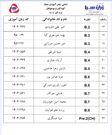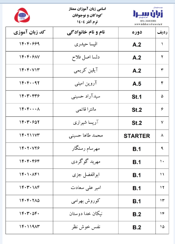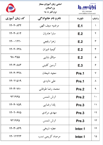 زبان آموزان ممتاز
